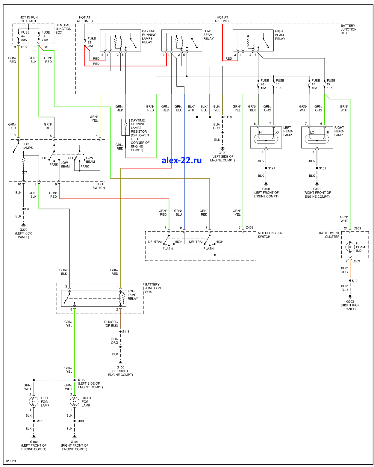 Ford Focus 1 схема фар и противотуманок