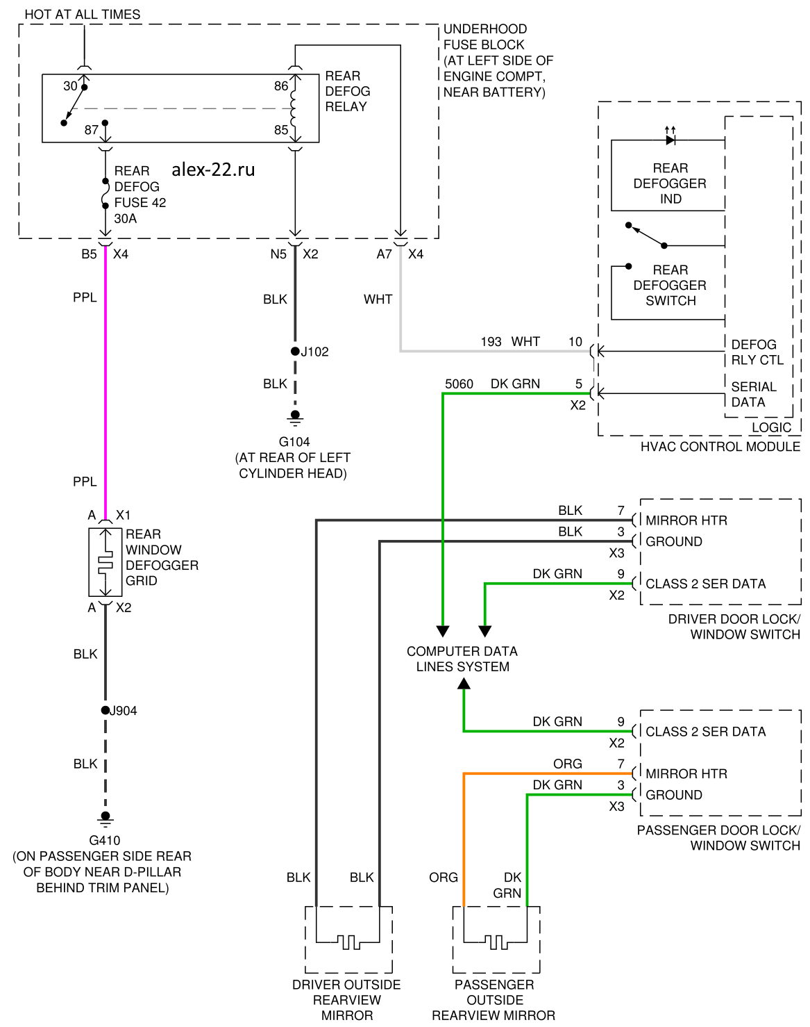 Hummer H2 схема подогрева зеркал и заднего стекла